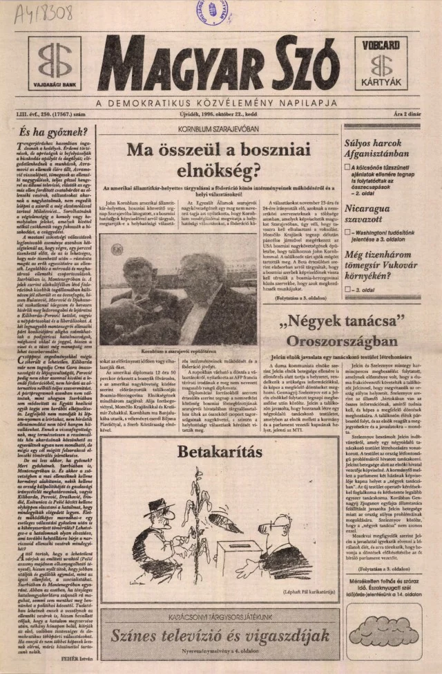 Magyar Szó, 53. évf. 1996. október 22. 250. sz. 1–16. oldal