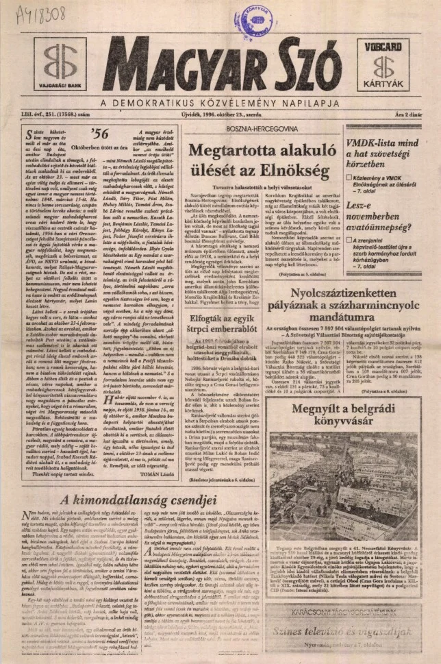 Magyar Szó, 53. évf. 1996. október 23. 251. sz. 1–16. oldal