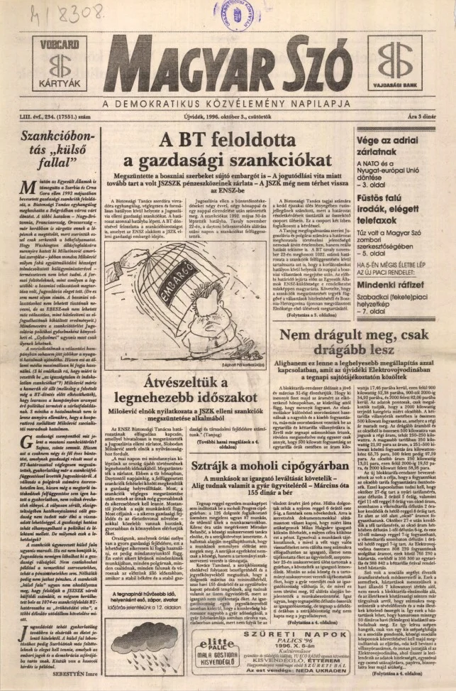 Magyar Szó, 53. évf. 1996. október 3. 234. sz. 1–16. oldal