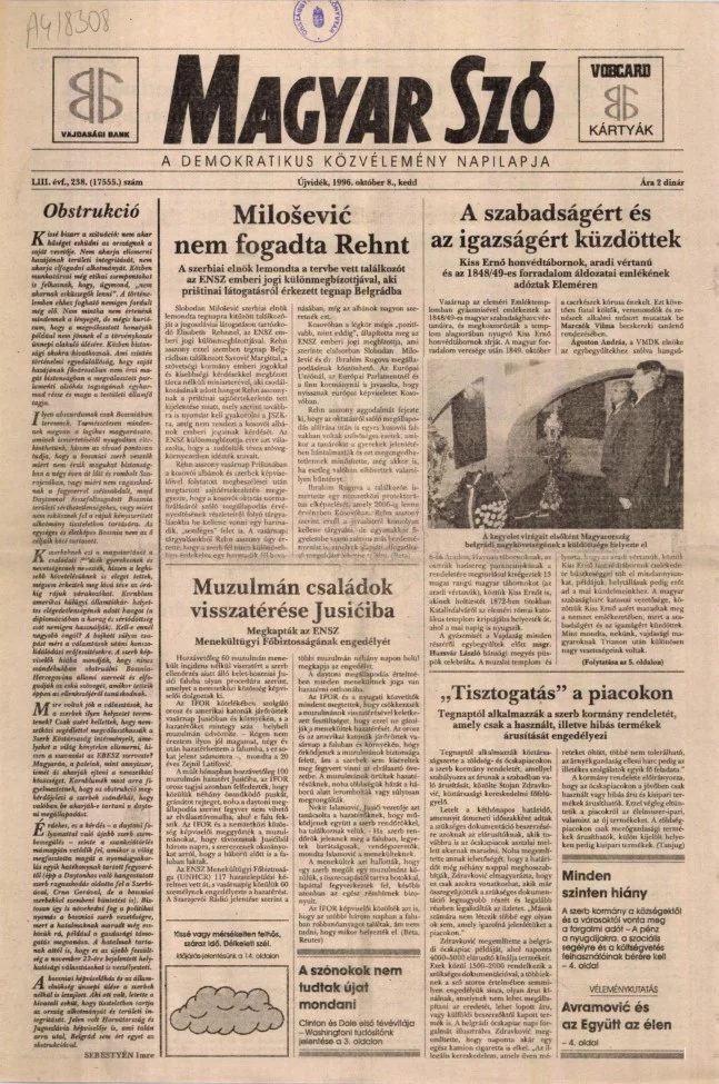 Magyar Szó, 53. évf. 1996. október 8. 238. sz. 1–16. oldal