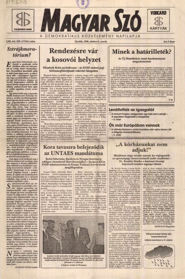 Magyar Szó, 53. évf. 1996. október 9. 239. sz. 1–16. oldal