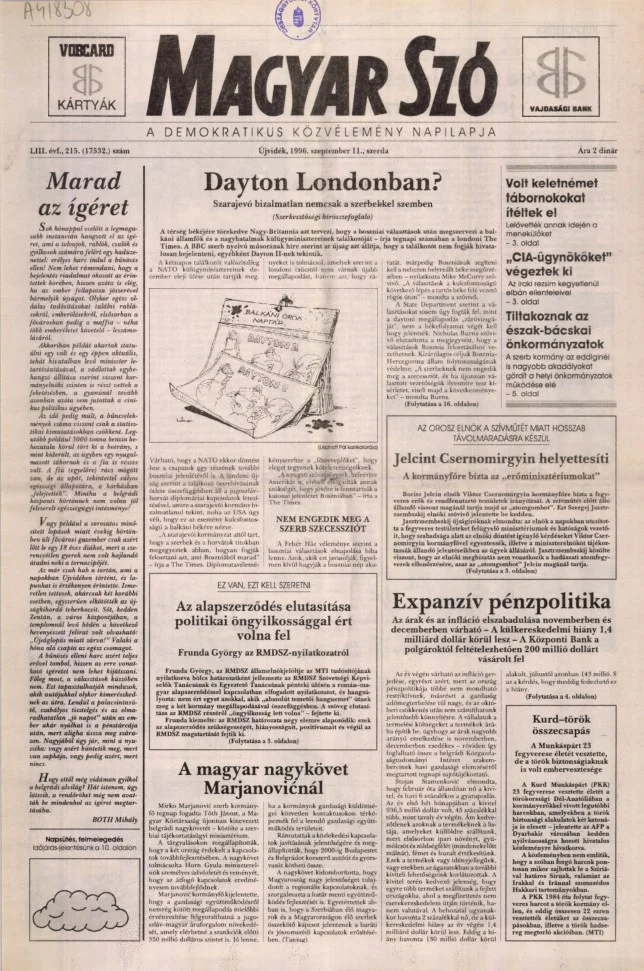 Magyar Szó, 53. évf. 1996. szeptember 11. 215. sz.