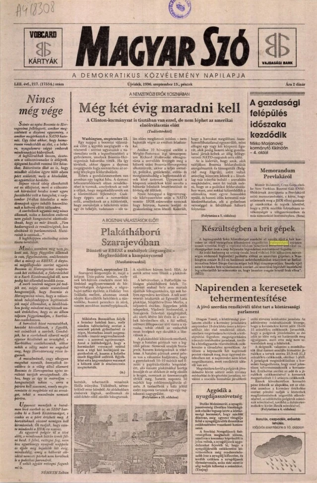 Magyar Szó, 53. évf. 1996. szeptember 13. 217. sz. 1–16. oldal