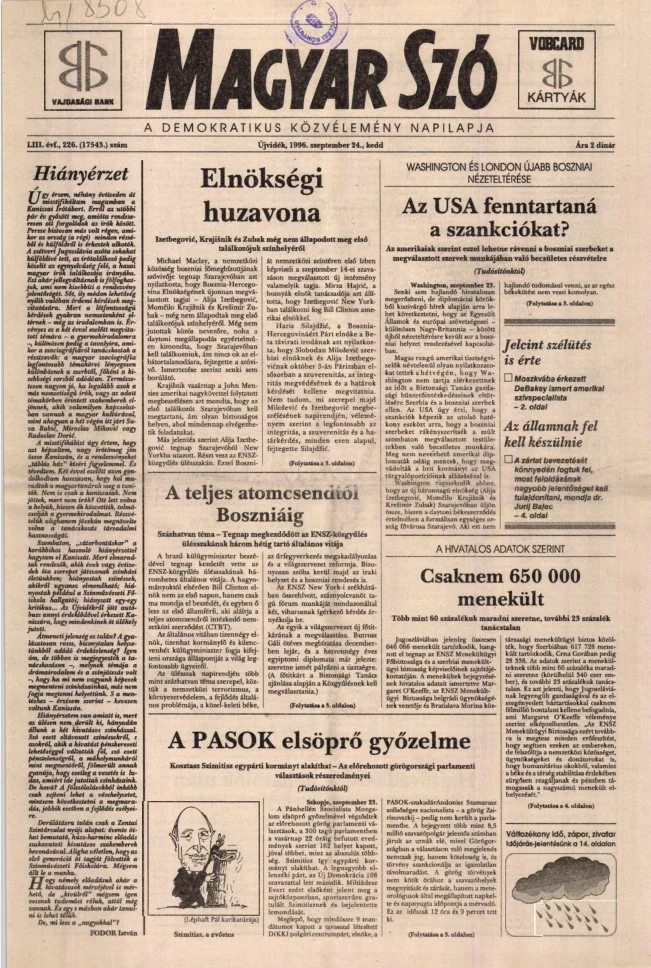 Magyar Szó, 53. évf. 1996. szeptember 24. 226. sz.