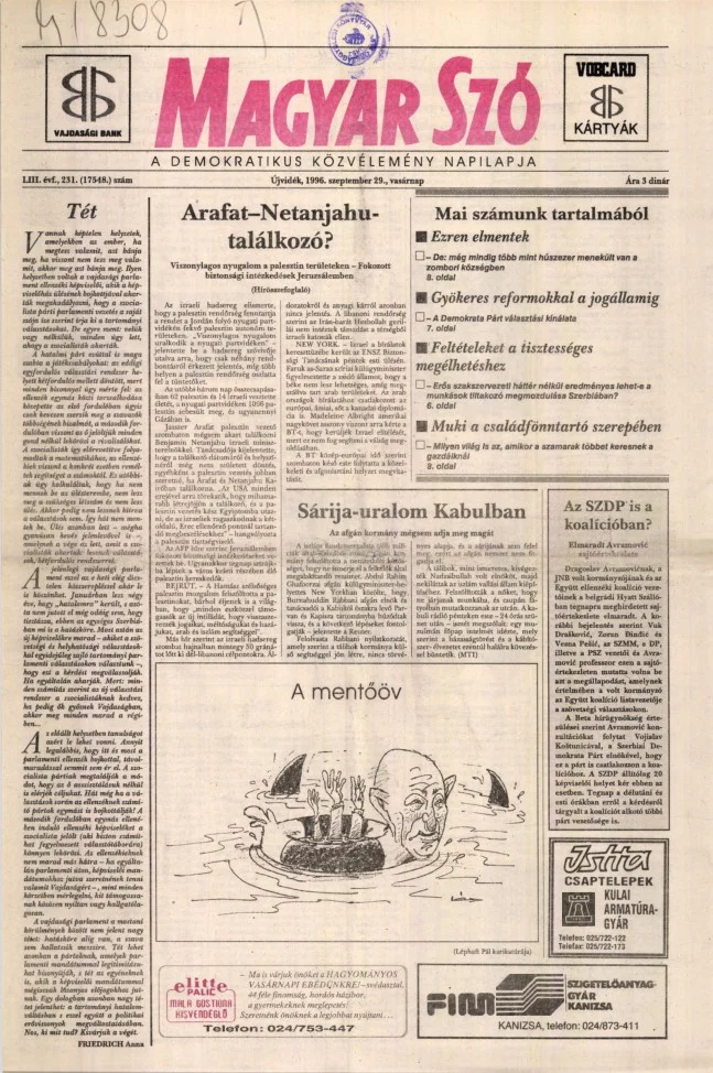 Magyar Szó, 53. évf. 1996. szeptember 29. 231. sz. 1–24. oldal