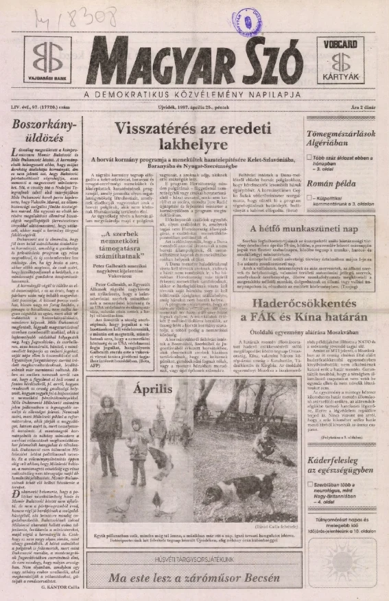 Magyar Szó, 54. évf. 1997. április 25. 97. sz. 1–16. oldal
