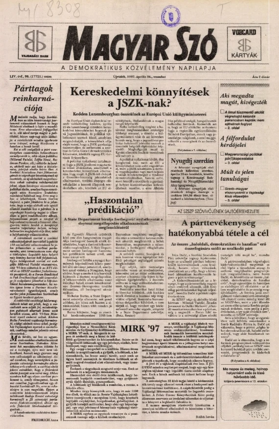 Magyar Szó, 54. évf. 1997. április 26. 98. sz. 1–16. oldal