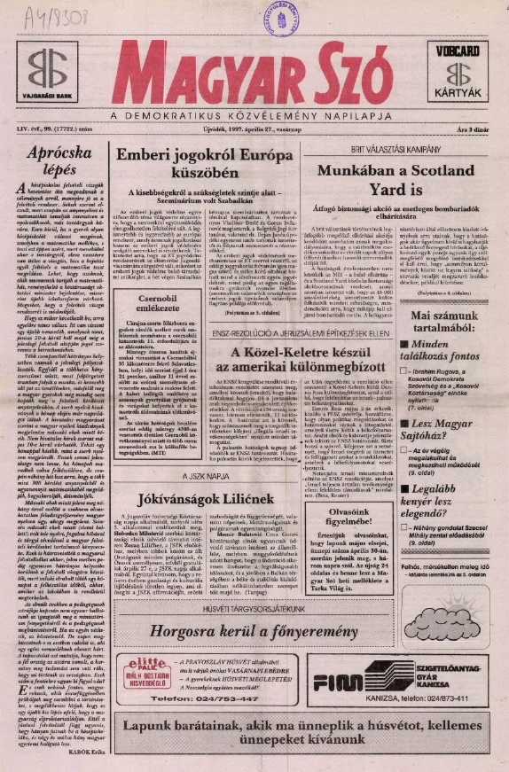Magyar Szó, 54. évf. 1997. április 27. 99. sz. 1–24. oldal