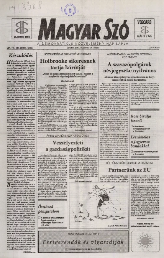Magyar Szó, 54. évf. 1997. augusztus 13. 189. sz. 1–16. oldal