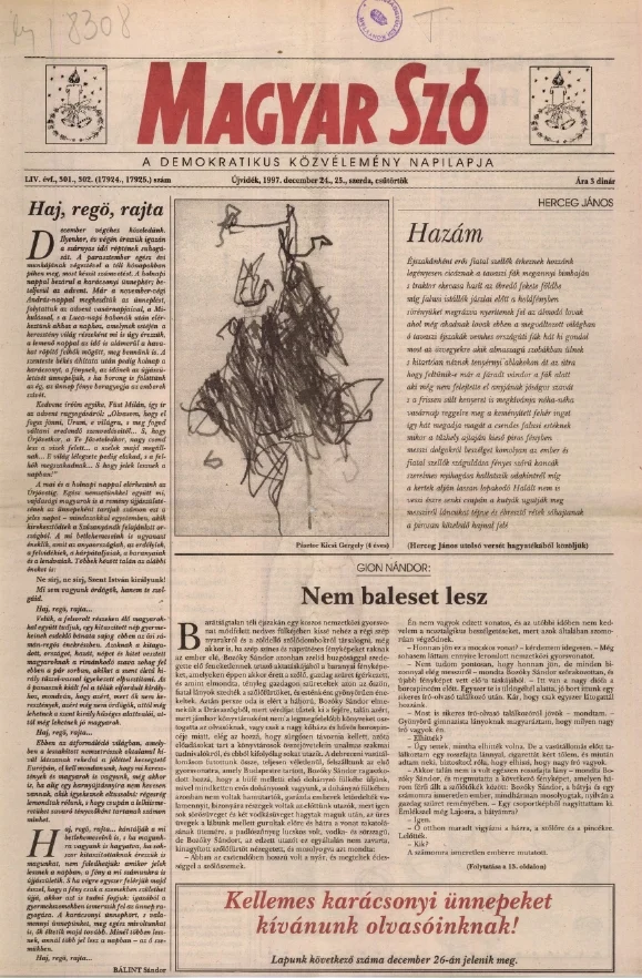 Magyar Szó, 54. évf. 1997. december 24. – 25. 301–302. sz. 1–24. oldal