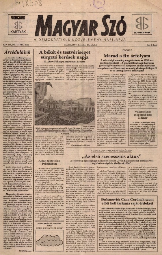 Magyar Szó, 54. évf. 1997. december 26. 303. sz. 1–16. oldal