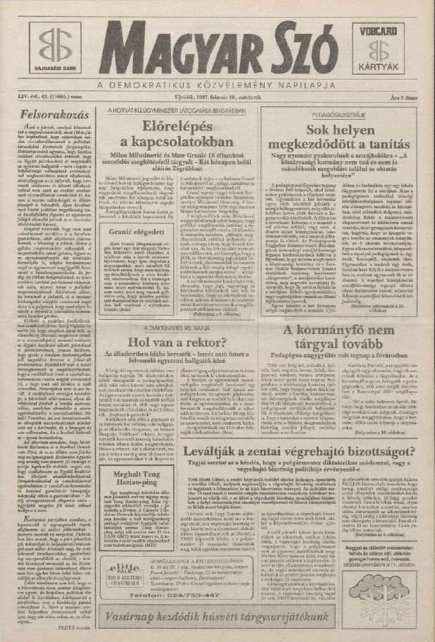 Magyar Szó, 54. évf. 1997. február 20. 42. sz. 1–16. oldal