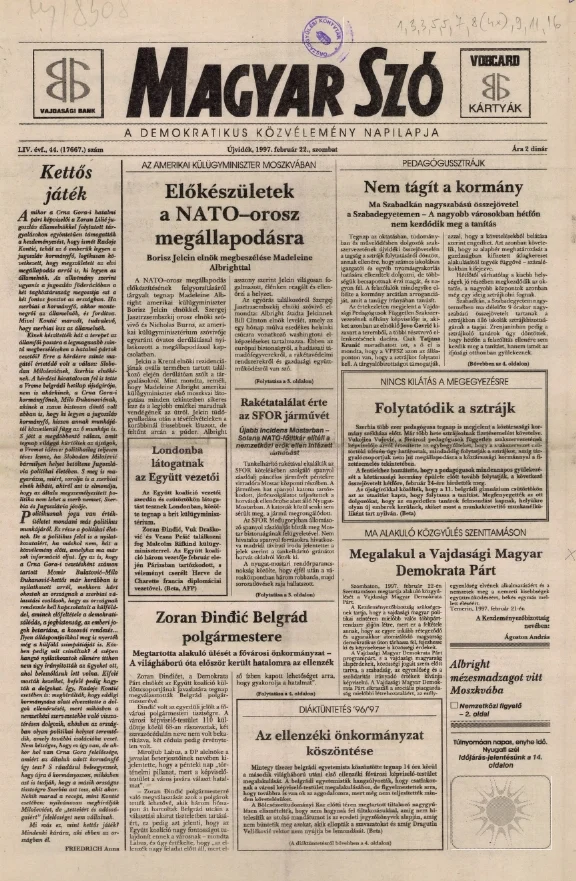 Magyar Szó, 54. évf. 1997. február 22. 44. sz. 1–16. oldal