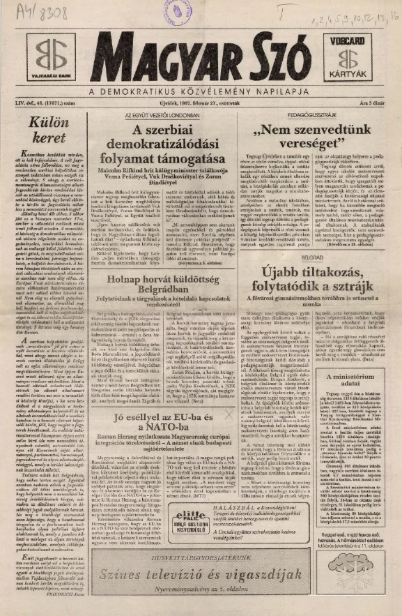 Magyar Szó, 54. évf. 1997. február 27. 48. sz. 1–16. oldal