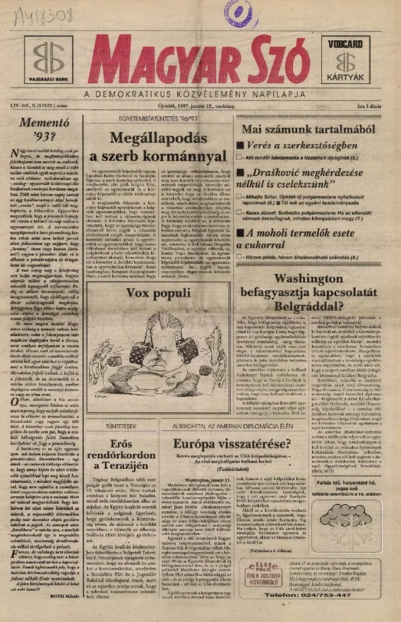 Magyar Szó, 54. évf. 1997. január 12. 9. sz. 1–24. oldal