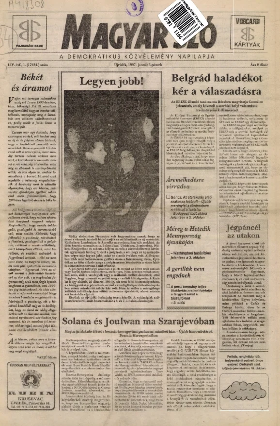 Magyar Szó, 54. évf. 1997. január 3. 1. sz. 1–16. oldal