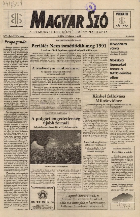 Magyar Szó, 54. évf. 1997. január 7. 4. sz. 1–16. oldal