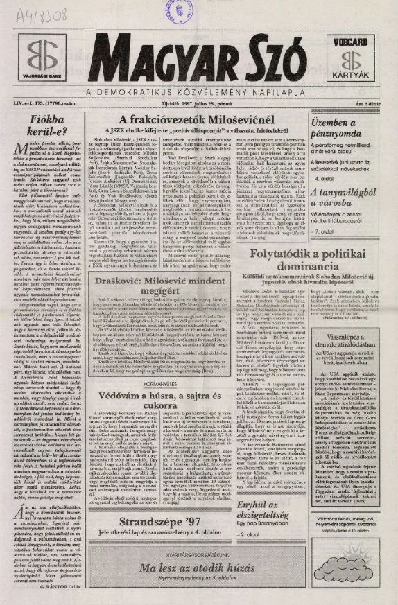 Magyar Szó, 54. évf. 1997. július 25. 173. sz. 1–16. oldal