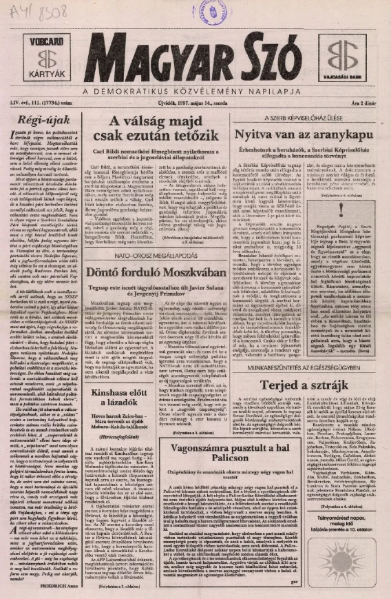 Magyar Szó, 54. évf. 1997. május 14. 111. sz. 1–16. oldal