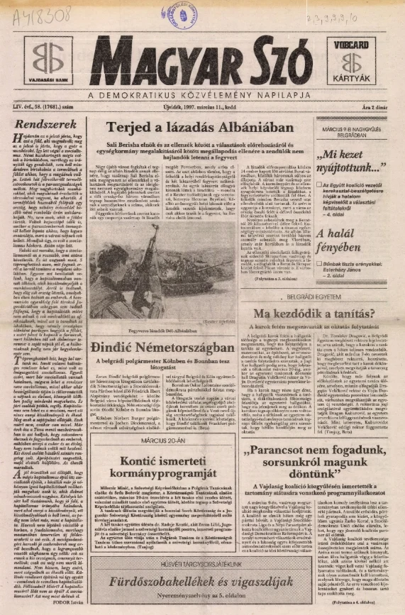 Magyar Szó, 54. évf. 1997. március 11. 58. sz. 1–16. oldal