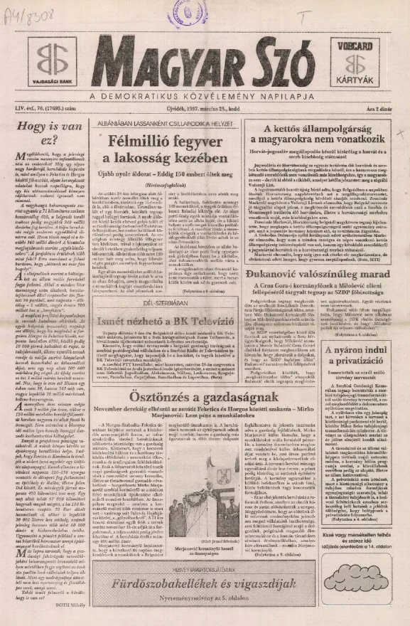 Magyar Szó, 54. évf. 1997. március 25. 70. sz. 1–16. oldal