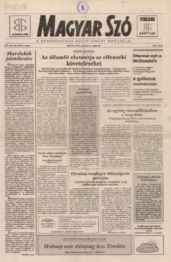 Magyar Szó, 54. évf. 1997. március 6. 54. sz. 1–16. oldal