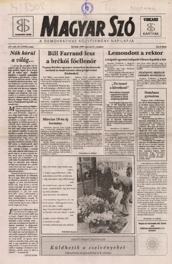 Magyar Szó, 54. évf. 1997. március 8. 56. sz. 1–16. oldal