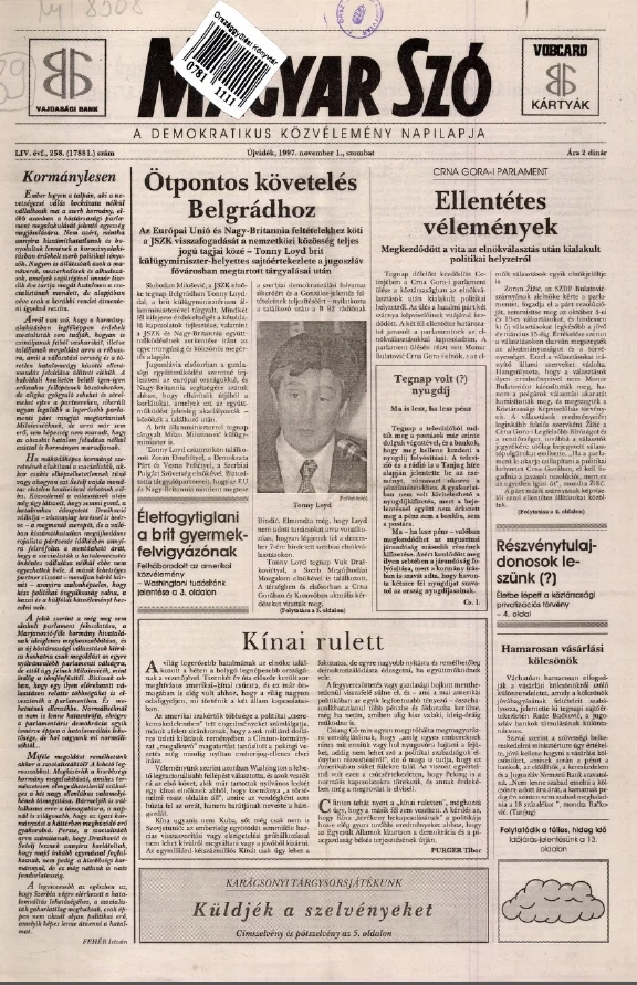 Magyar Szó, 54. évf. 1997. november 1. 258. sz. 1–16. oldal