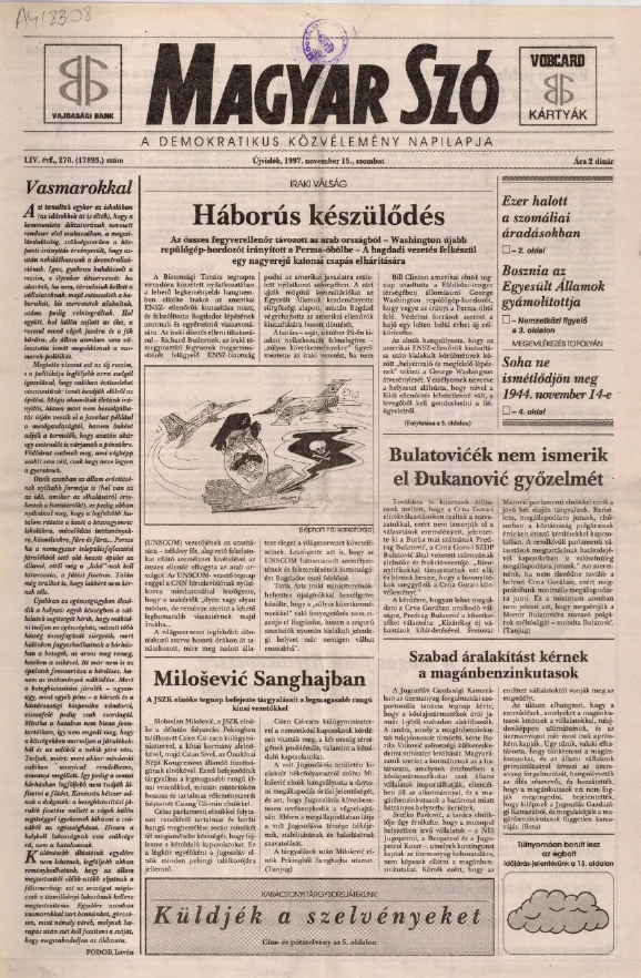 Magyar Szó, 54. évf. 1997. november 15. 270. sz. 1–16. oldal