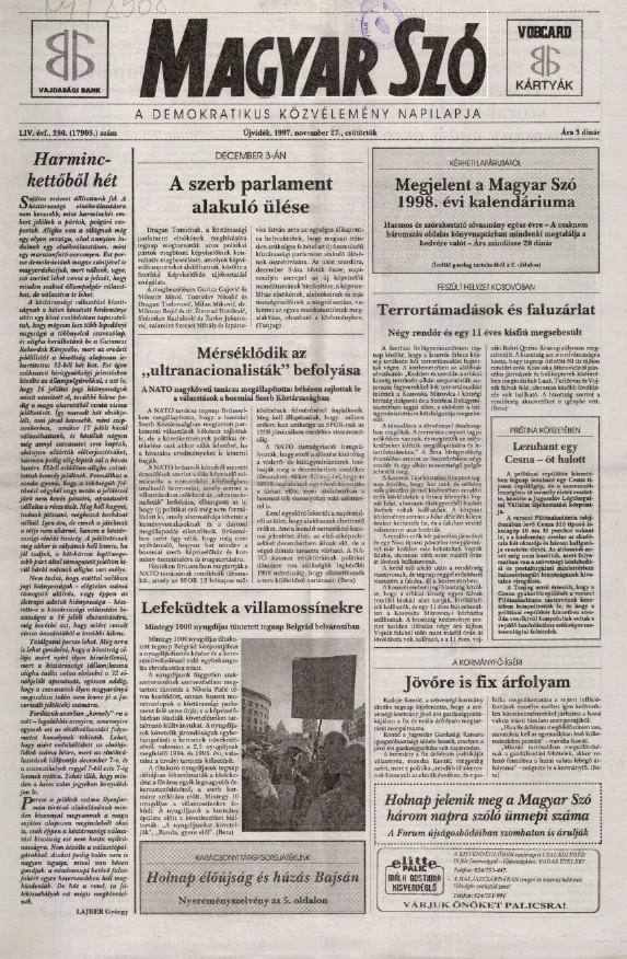 Magyar Szó, 54. évf. 1997. november 27. 280. sz. 1–16. oldal