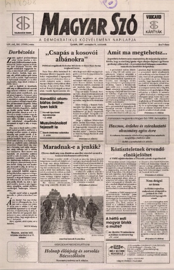 Magyar Szó, 54. évf. 1997. november 6. 262. sz. 1–16. oldal