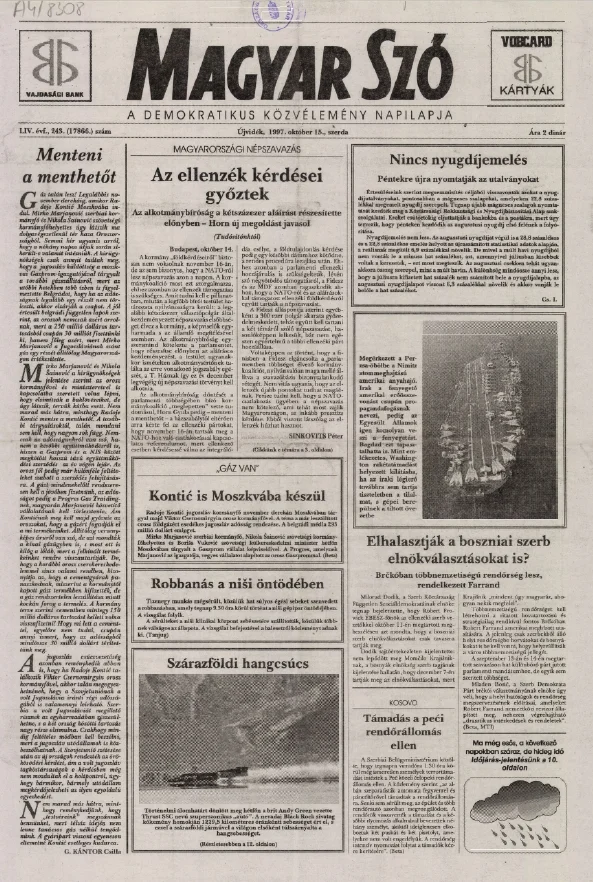 Magyar Szó, 54. évf. 1997. október 15. 243. sz. 1–16. oldal