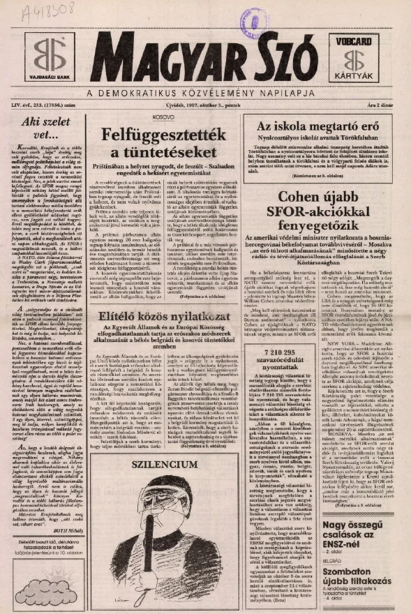 Magyar Szó, 54. évf. 1997. október 3. 233. sz. 1–16. oldal