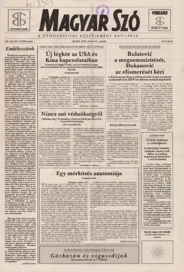Magyar Szó, 54. évf. 1997. október 31. 257. sz. 1–16. oldal