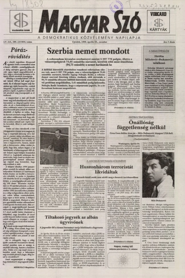 Magyar Szó, 55. évf. 1998. április 25. 100. sz. 1–16. oldal