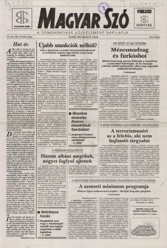 Magyar Szó, 55. évf. 1998. április 29. 103. sz. 1–16. oldal