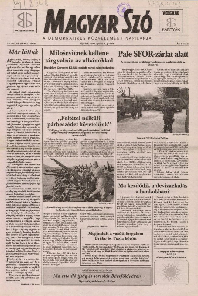Magyar Szó, 55. évf. 1998. április 3. 81. sz. 1–16. oldal