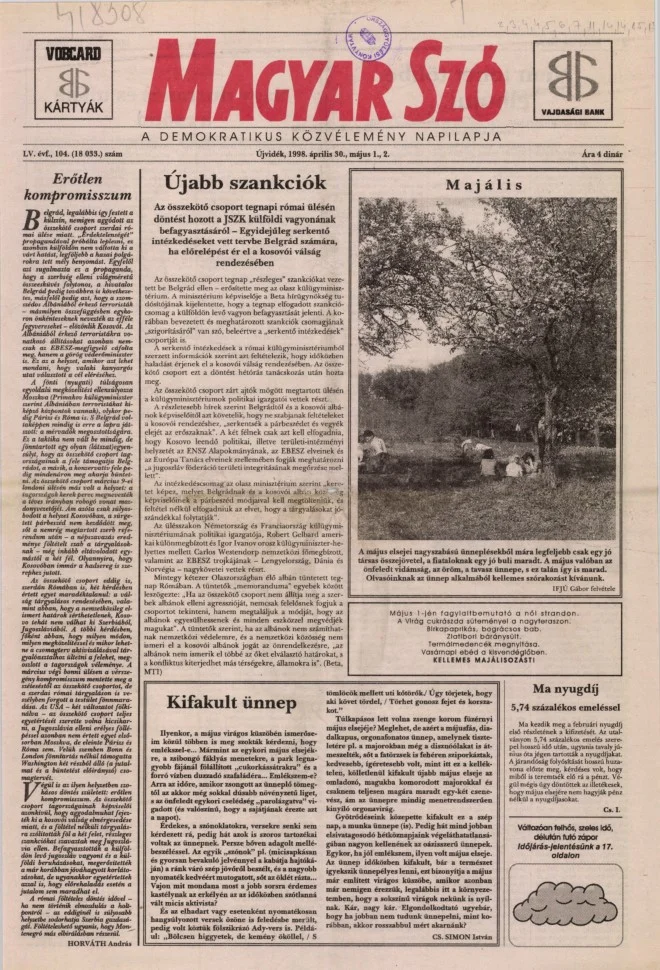 Magyar Szó, 55. évf. 1998. április 30. – május 2. 104. sz. 1–24. oldal