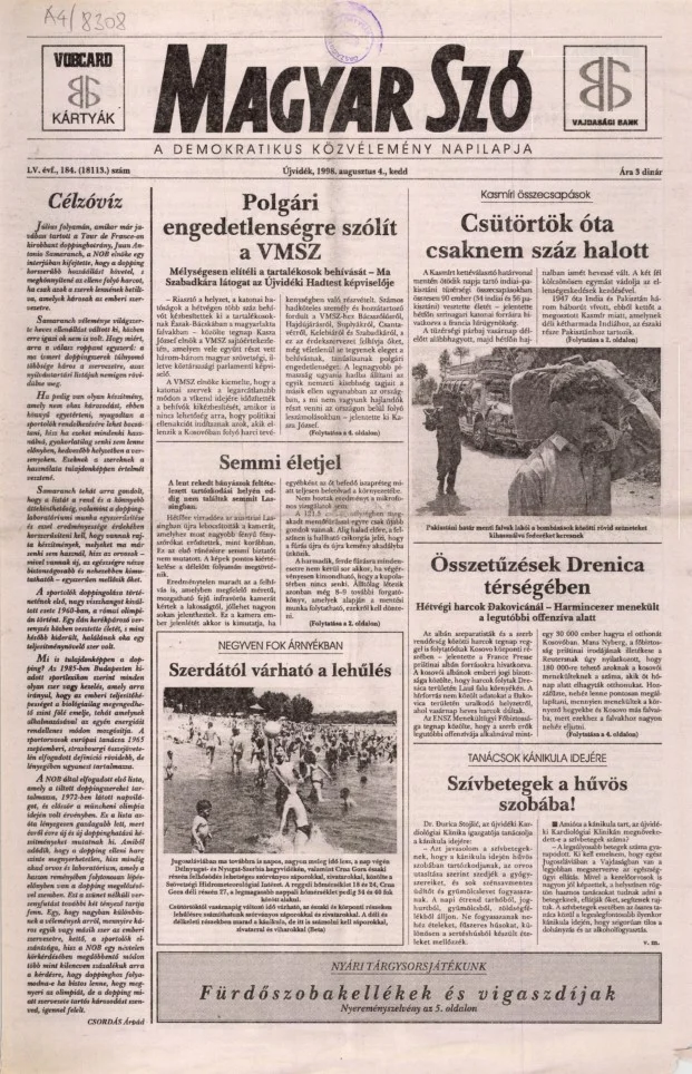 Magyar Szó, 55. évf. 1998. augusztus 4. 184. sz. 1–16. oldal