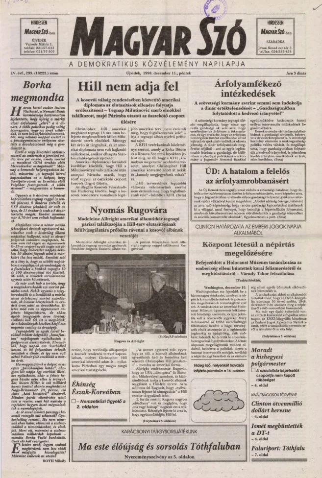 Magyar Szó, 55. évf. 1998. december 11. 293. sz. 1–16. oldal