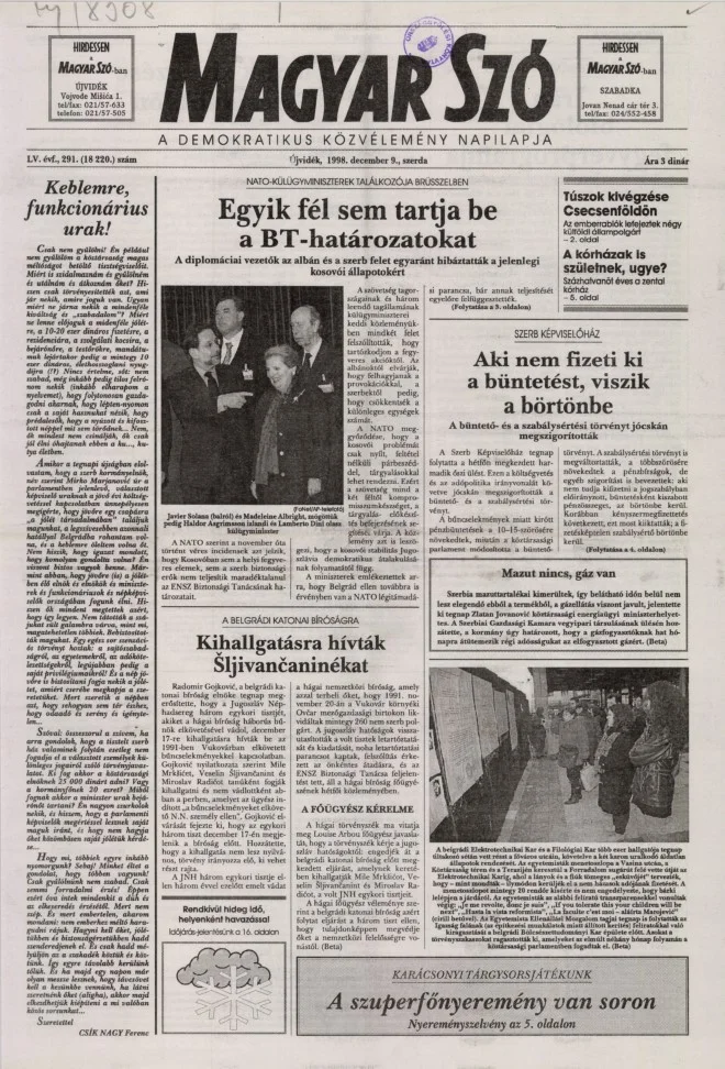 Magyar Szó, 55. évf. 1998. december 9. 291. sz. 1–16. oldal
