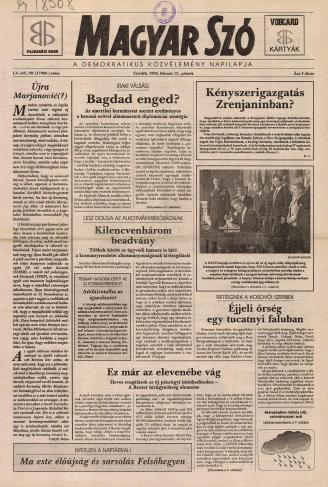 Magyar Szó, 55. évf. 1998. február 13. 39. sz. 1–16. oldal