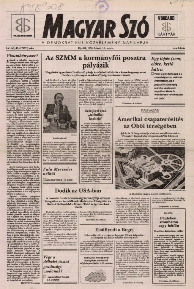Magyar Szó, 55. évf. 1998. február 18. 43. sz. 1–16. oldal