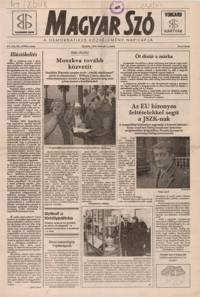 Magyar Szó, 55. évf. 1998. február 3. 30. sz. 1–16. oldal