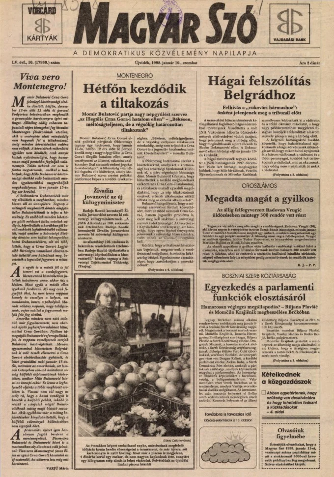 Magyar Szó, 55. évf. 1998. január 10. 10. sz. 1–16. oldal