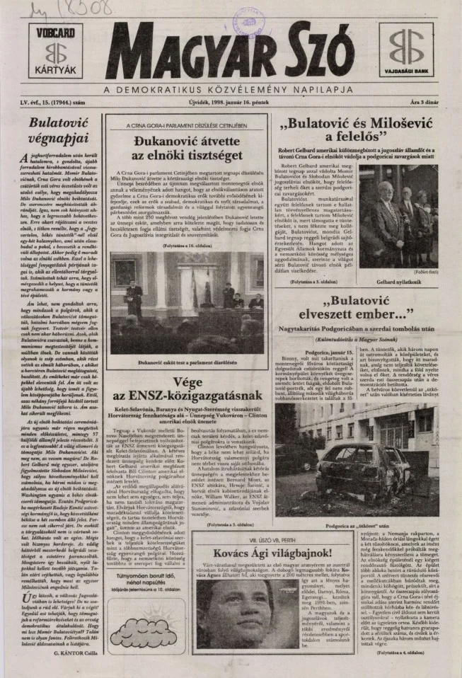 Magyar Szó, 55. évf. 1998. január 16. 15. sz. 1–16. oldal