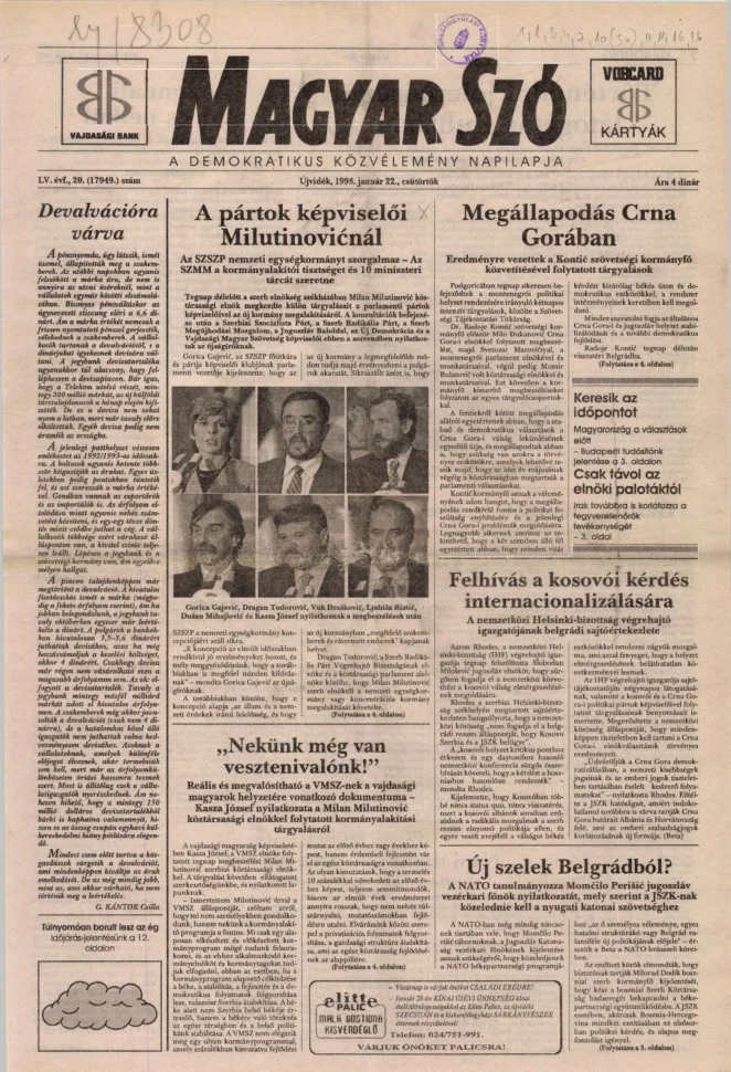Magyar Szó, 55. évf. 1998. január 22. 20. sz. 1–16. oldal