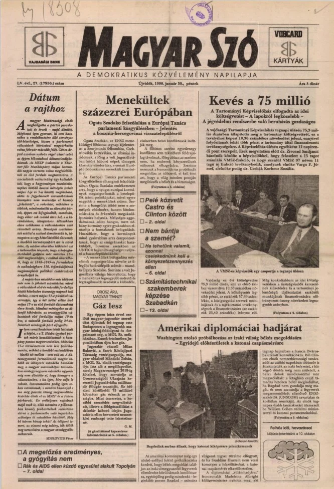 Magyar Szó, 55. évf. 1998. január 30. 27. sz. 1–16. oldal