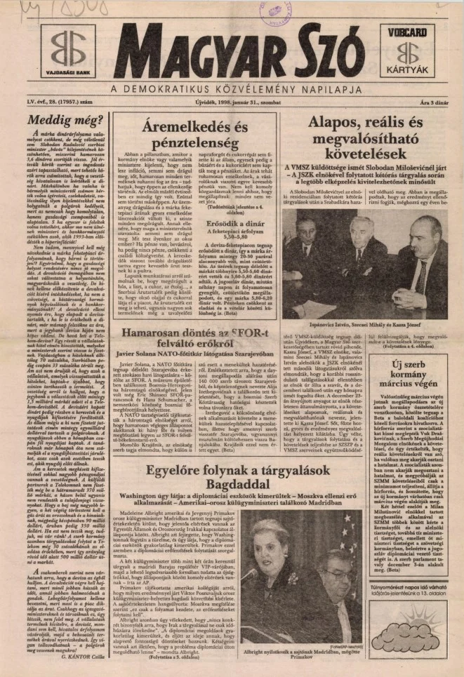 Magyar Szó, 55. évf. 1998. január 31. 28. sz. 1–16. oldal