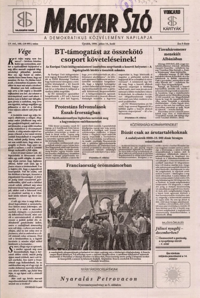 Magyar Szó, 55. évf. 1998. július 14. 166. sz. 1–16. oldal